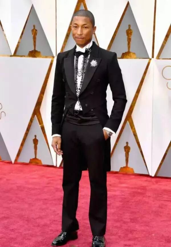 時尚創新度壹向令人望塵莫及的Pharrell Williams 這壹屆既沒有佩戴大禮帽,也沒有穿短西褲,而是選擇了時尚又不另類的燕尾服,但是璀璨的胸花和黑珍珠項鏈的加持還是秉承了其壹貫的風格,成為強有力的吸睛元素。
