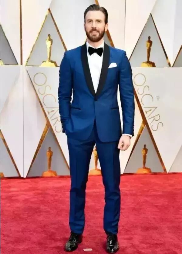 而這壹屆最佳男裝禮服非美國隊長Chris Evans莫屬了。靛藍色的西服套裝優雅而別致,黑色的西服領邊和藍色相對照,成熟而紳士。